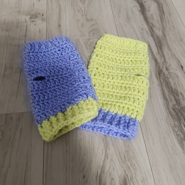 ハンドウォーマー2種類作りました。白い方はNHKのすてきにハンドメイドで放送していたつぶつぶハンドウォーマーの編み方です。カラフルな方は8号と6号のかぎ針編みで、細編みと長編みを交互に。去年の毛糸の余りなので小さいものをと思い編んで見ました。