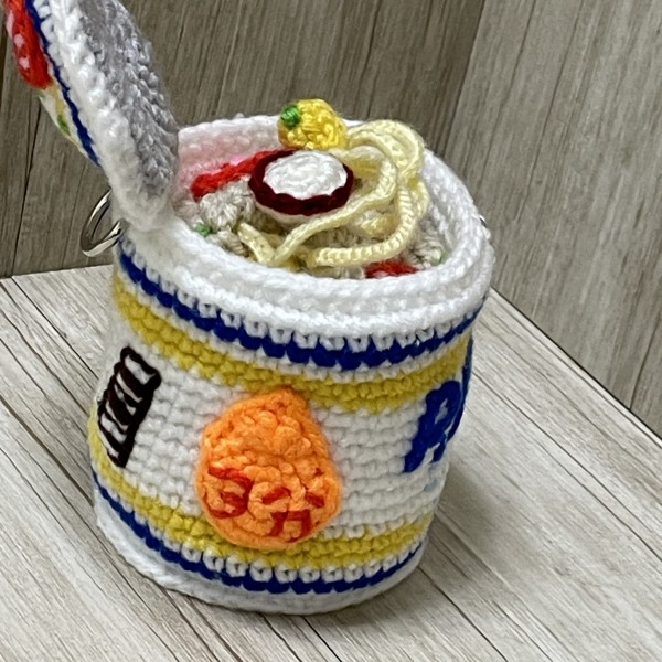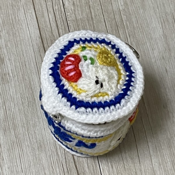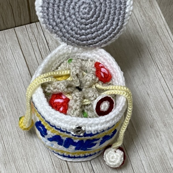 カップラーメン巾着のシーフードです。具は、イカ、エビ、卵、ネギです。側面と蓋を可愛くしてみました。