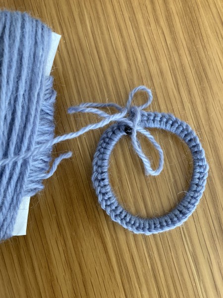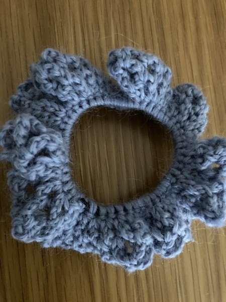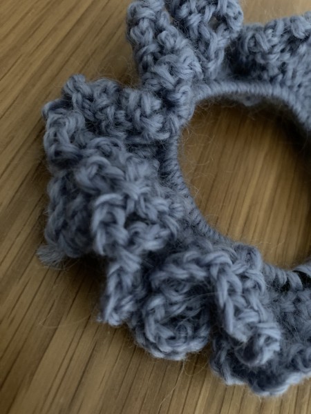 かぎ針を初めてする人の練習になるかな?と思って、鎖編みと細編みだけで出来るシュシュを作りました。