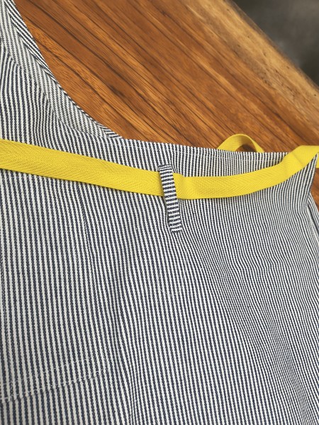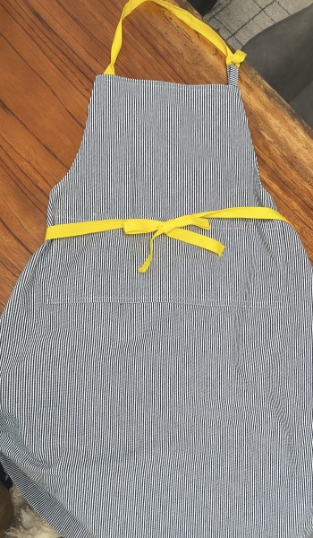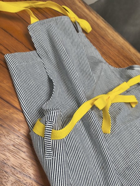 ストライプ柄に鮮やかなイエローがポイントのエプロンです。