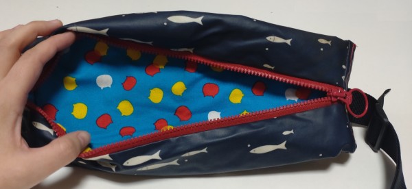 | 当時勤めていた職場で使うために作りました。体にフィットするようにと、スマホ、免許証、たまに車のカギを入れるくらいなのでマチはありますがあまり厚くならないようなレシピで作りました。元のレシピよりも幅を大きくしています。外は多少の防水、防汚効果をきたいしてラミネート生地を。内側はあまり暗くならないようにねこたまのラムネの生地を使用しました。ファスナーは開けやすいように持ち手が大きいものを選んで使用しました。 | |