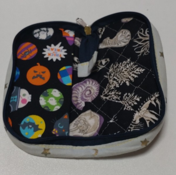 | 手帳型ケースを付けたウォークマンを入れるために作りました。母子手帳などを入れられるマルチケースの作り方を参考にして作りました。ねないこだれだの生地で作った方はサイズが小さく、ファスナーの付け方も納得がいかなかったので、小物入れとして使っています。2ヶ月後にリベンジしたものが二つ目です。サイズを大きくしてファスナーを一つ目とは逆に付けました。どちらも内側にキルト生地を使いました。内ポケットにのみ厚地の接触芯を付けています。 | |