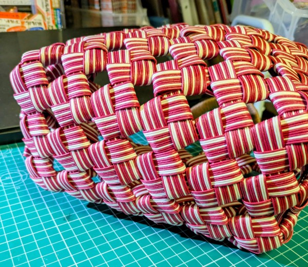 主な材料 クラフトバンド(ラズベリーボーダー)