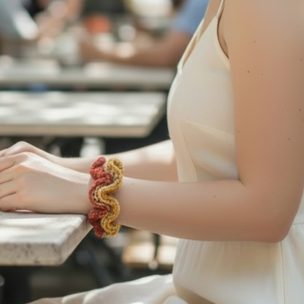どんな色の洋服にも合うように、カラフルな感じに仕上げました。作り方は昨日投稿したやり方とほぼ同じです。