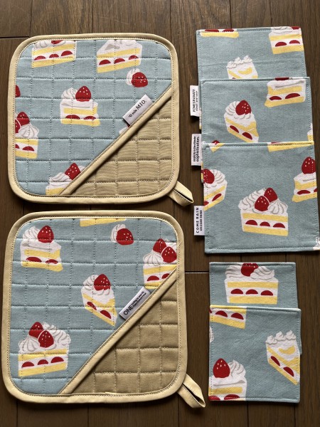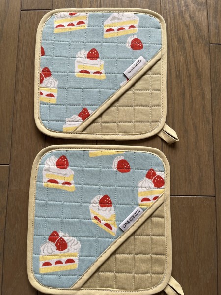 | 仕上がりサイズ | 鍋つかみ20センチ四方、コースター13センチ四方と10センチ四方 |