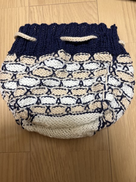 引き上げ編みを用いた巾着です。日本手芸普及協会さんのテキストより。