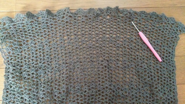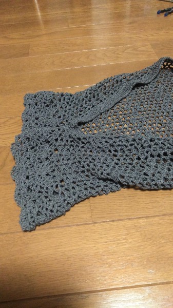コットンヤーンでボレロとマーガレットの間みたいなのを作りました。袖だけパイナップル編みです。