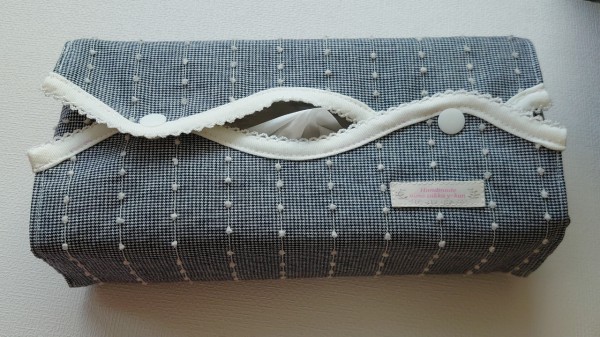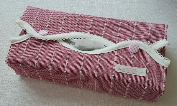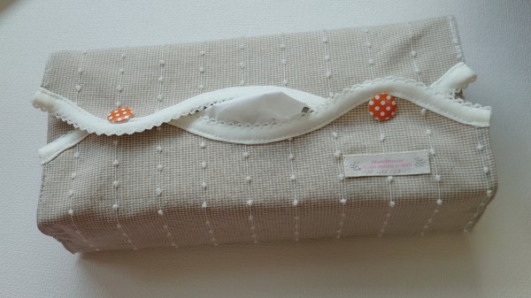 ティシュの取り出し口をウェーブ型にしてバイアステープで可愛いくしました。