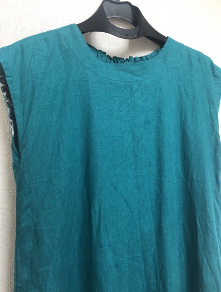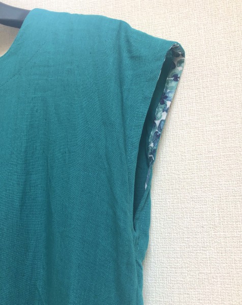 今回、袖ぐりにはリバティのバイアスが内側だけに着きます。