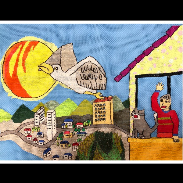子供が小学生の頃描いた読書感想画を刺繍してみました。