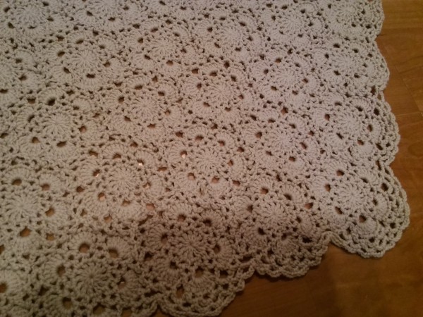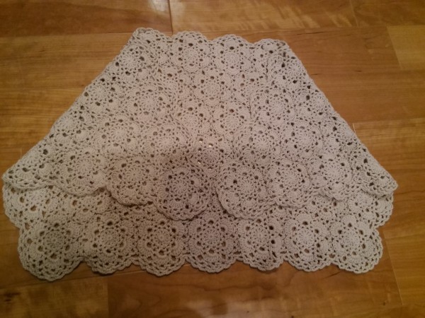 モチーフつなぎのショールandひざ掛けです。肩と背中をちょうど覆えるほどのコンパクトなサイズ。