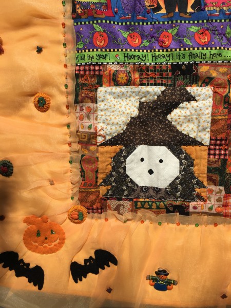 前にキルト展に参加した時、出展した物。あの頃、オーガンジーを乗せてキルトをするのが気にいたなぁと思い出します。サイズ128×151cm