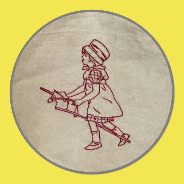 アンティーク生地にぴったりの刺しゅうで、素敵ですね。