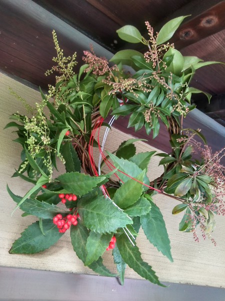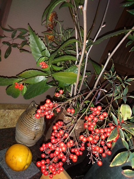 庭の剪定をしてもらったので、今年のお正月飾りは生木で作りました。