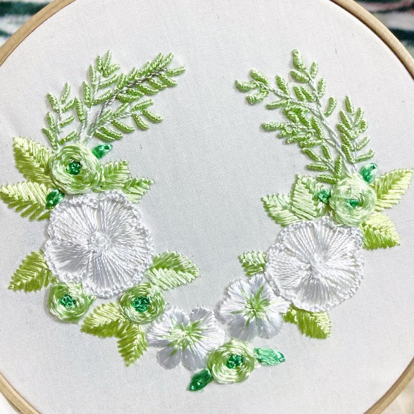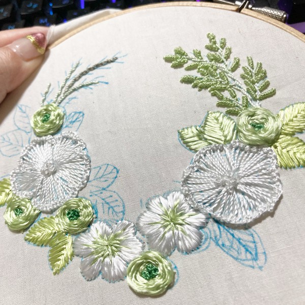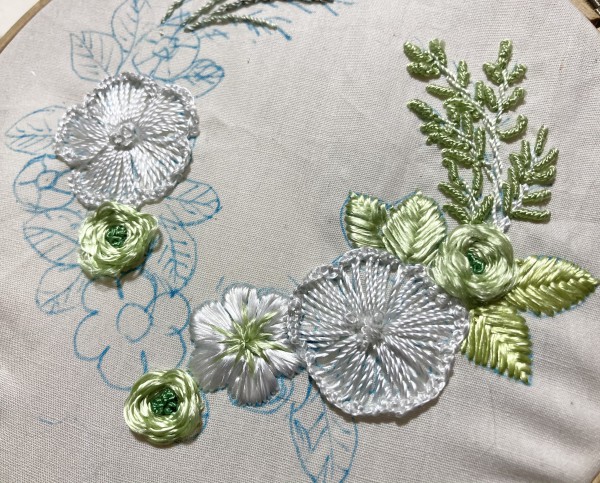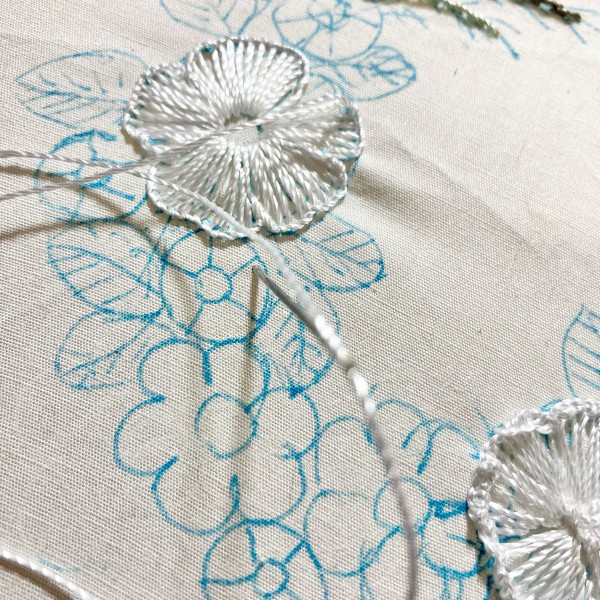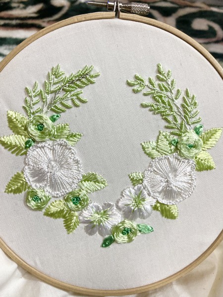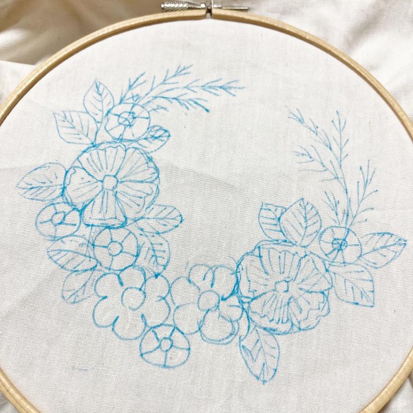 やっと出来た。でも、どうやら生地に対して斜めに下絵を描いてしまったらしい。