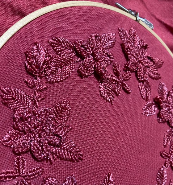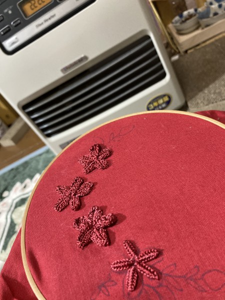 寒いので、ファンヒーターの真前でチクチクしていたら。。。