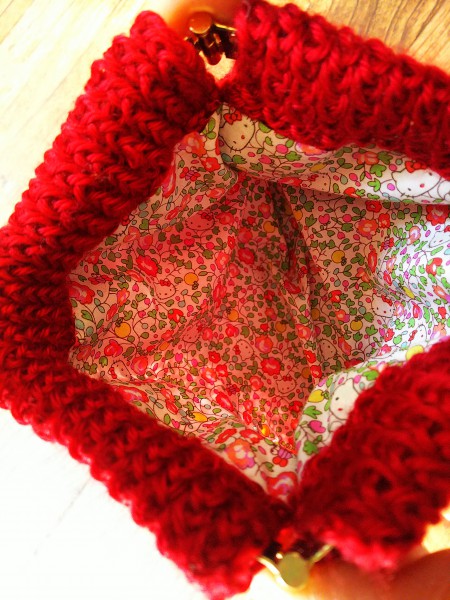 中布にキティーちゃんのリバティー生地を使って縫い付けています。