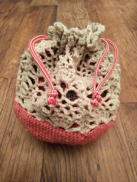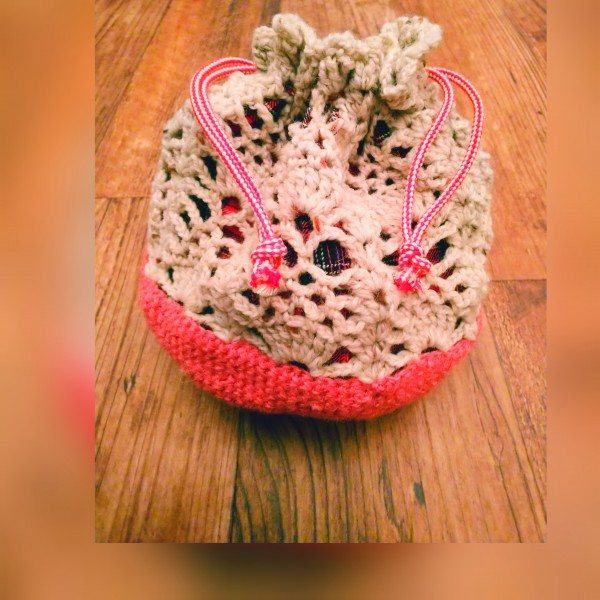 余り毛糸の消費に巾着を作ってみました。