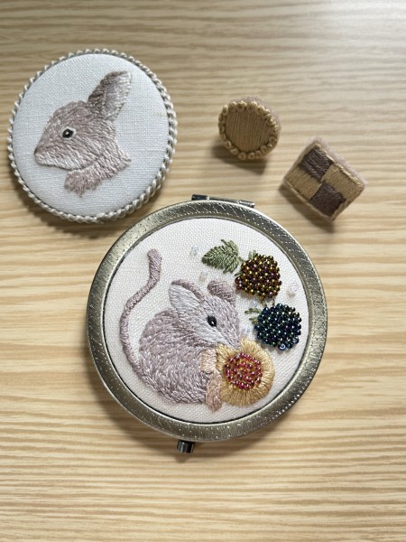 | 森本繭香先生のオンラインレッスンのチャプター3が完成しました。 今回はコンパクトミラーに仕上げるレッスンでした。 鏡は等倍と拡大鏡の2面になっていて6cm程度の大きさで使いやすいミラーです。 今回初めてビーズ刺しゅうをしましたが、詰めすぎてチョーBIGベリーに仕上がったのでやり直しましたが、それでも大きく仕上がりました(´・ω・`)これも練習あるのみですね( ¯•ω•¯ ) でも、ビーズを入れるとキラキラして一気に可愛さ倍増(⑉• •⑉)♡ 使うの勿体ないので、しばらくは飾っておこうと思います。 次はがま口のレッスンです。 |