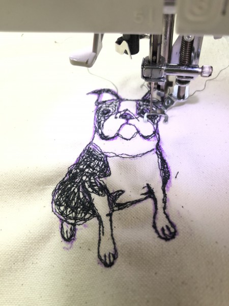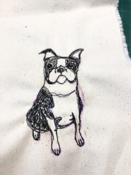 折角刺繍したので裏布と下げ布をつけて中綿を入れてみました。