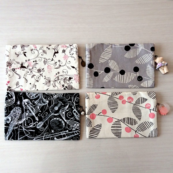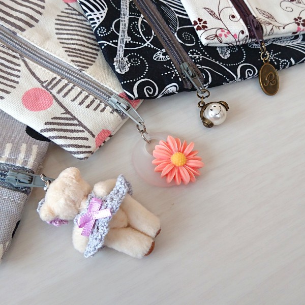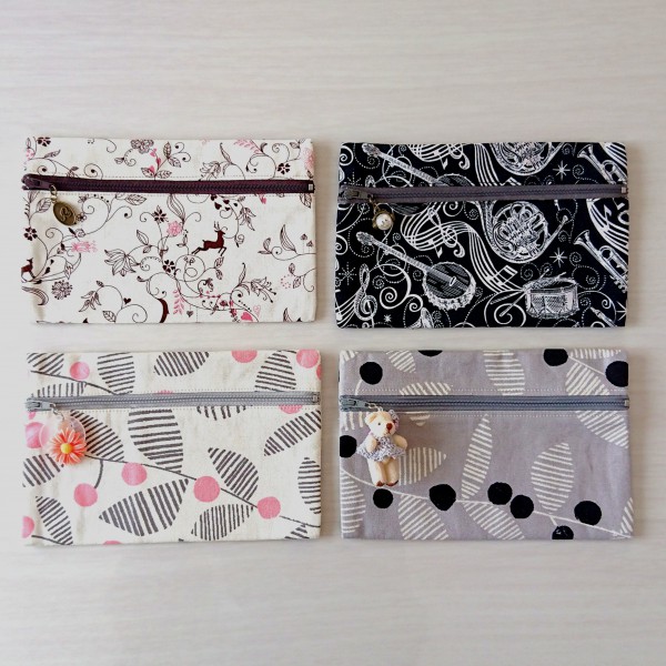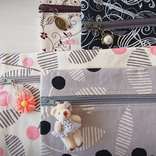 | ファスナーポーチ作りの達人になる!』の「側面ファスナーのポーチ」をつくりました。 ファスナー消費&ファスナー付けの練習(ついでにハギレも消費!)第3弾です。 ファスナーの幅が揃わないし、ステッチがガタガタ…… 正確な裁断や印付け、真っ直ぐ縫うこと、基本的なところができていないのだと今さらながらおもいます。 出来映えはともかく、お気に入りのチャームをつけたり、クマさんに洋服を編んだり、今回も楽しく出来ました。 小さいハギレが多いので、4 つのポーチのうち3つの内布は接ぎ合わせて使っています。 |