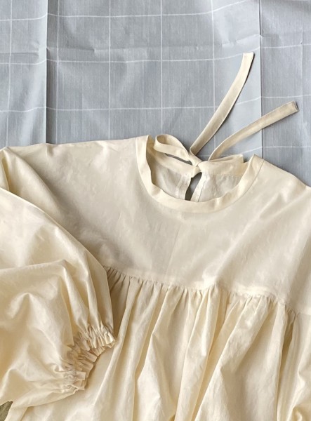 胸元でギャザーをたっぷりとってふんわりするようになってます。