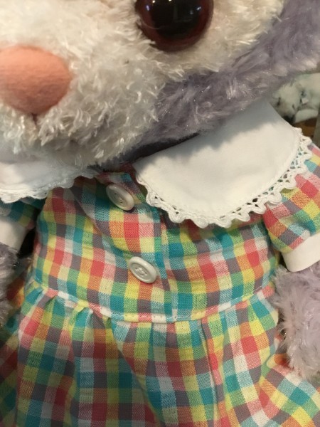 パステルチェック生地に襟は白地にレース。