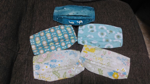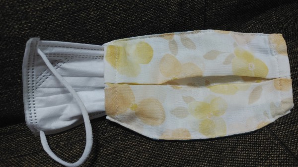 | マスクもファッションアイテムとして使っているものの、布マスクより機能面では不織布タイプマスク。 ということで、すっぽりかぶせるタイプのマスクカバー製作しました。 肌にあたる部分がどうしても肌荒れしてしまうので、内側はガーゼ生地で。 ネットでみたものを参考に製作しましたが、アゴラインが浮くので、少し角度つけて縫いました。 薄手の生地をチョイスしたものの、重なる部分がどうしても厚さがあり縫うのが少し大変でした。 |