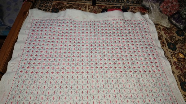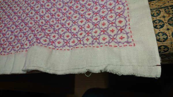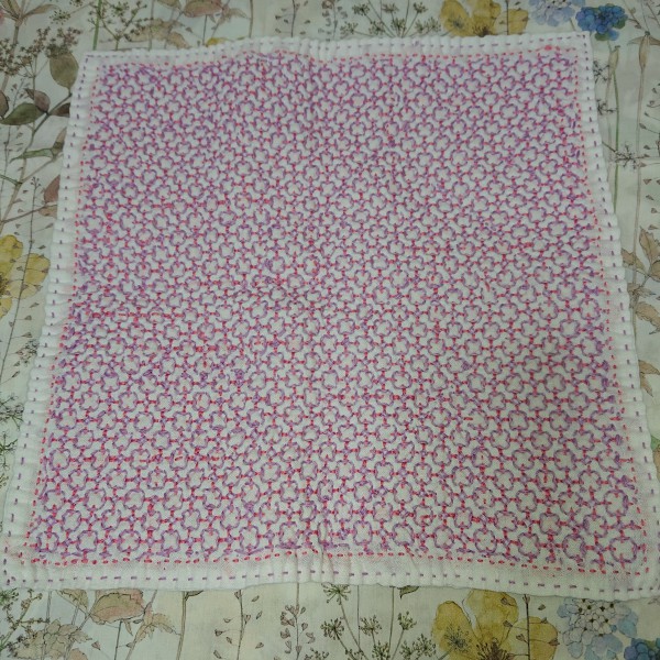 フキンの枠外の処理を最後にしたため、ギャザーの寄った仕上げになりました。