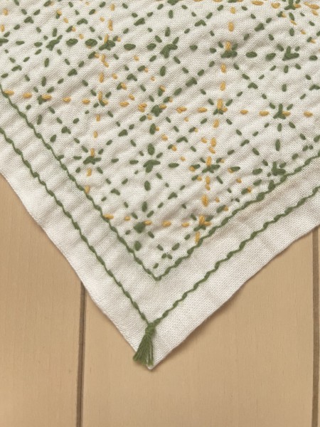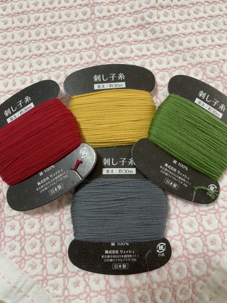 | Seriaで購入した刺し子糸で 八角井桁を刺そうと思ったけど、途中で分からなくなって、オリジナル柄になってしまいました(>_<) でも、クリーン×イエローの組み合わせが可愛い作品に仕上がって満足です。 あと、縁の飾りはプロ感がアップするのでマストです(*'▽'*)♪ いつも碁盤の目を書く時、段ズレしたり、仕上がった後、ふきんの端がヨレヨレに波打っていたのが、気になっていましたが、今回、ふきんの仕立てと碁盤の目の書き方を、刺し子会と教室nuu.をされている、yucco先生のブログを参考にすると、驚く程に早く綺麗に仕上がりました(^-^)/ |