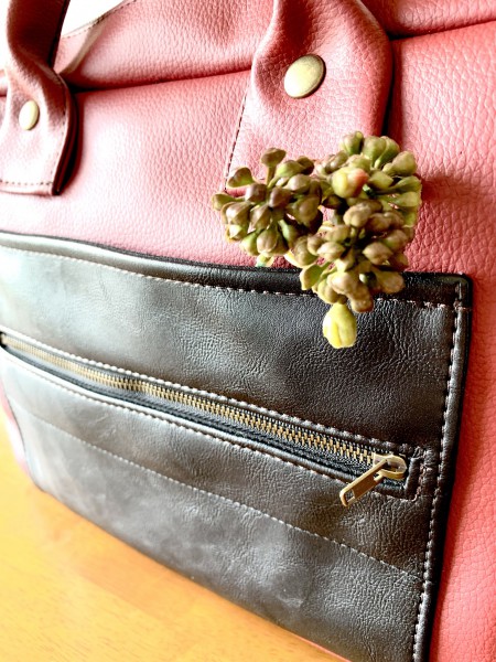 フェイクレザーバックを作りました。元々、フェイクレザーを主に作ってます。男子でも女子でも持ってくれたらカッコイイなぁって思いで作りました。