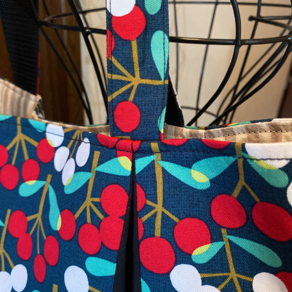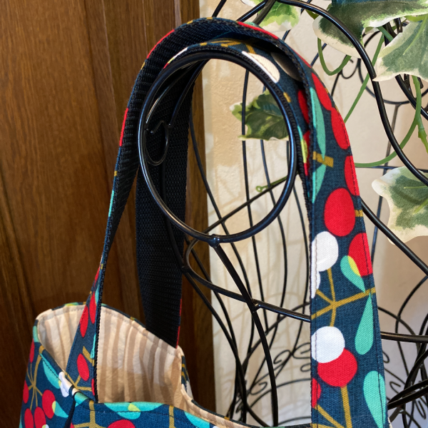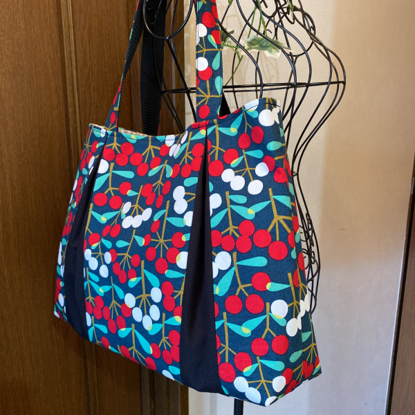 北欧木の実柄に黒生地で切り替えを付けることにより、和モダンな感じになりました。