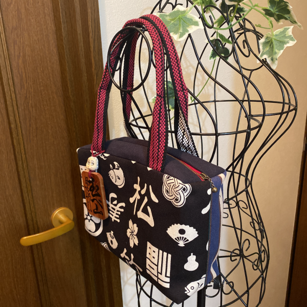 持ち手紐は酒屋さんの前掛け紐を使っているので、しっかり丈夫です。木札とセットでレトロ感出ています。