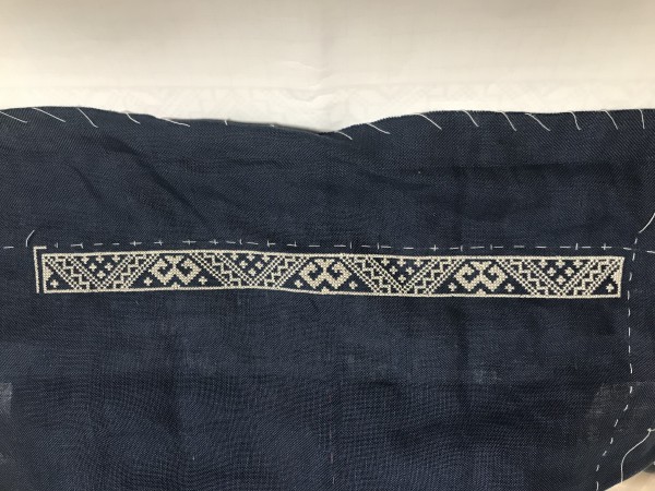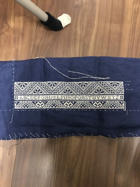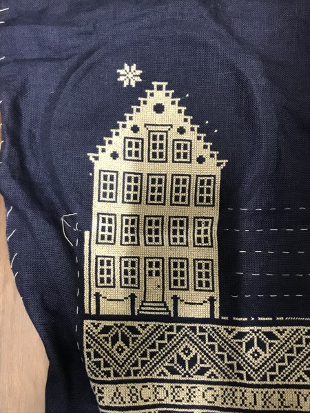 ちょうどネイビーのリネンと指定色の糸があったので、活用。 32ct、DMC刺繍糸822番