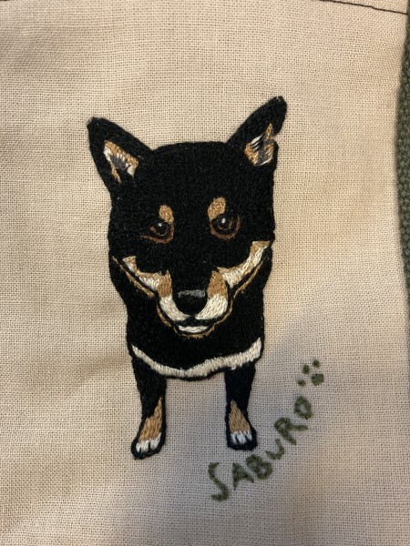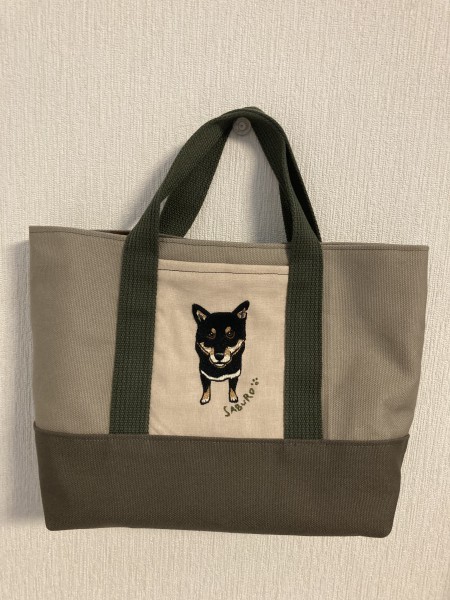 知り合いの飼っているワンちゃんを刺繍で作ってから、トートバッグに仕上げました。