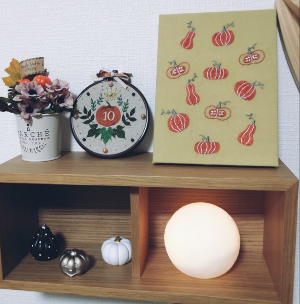 | 樋口愉美子のステッチ12カ月より ハロウィンパンプキン 今回パネルはダイソーの貼れるボードをカッターで切り、縁の所2センチだけ二枚重ね貼りして厚みを出しました。 いつも刺繍しているうちにシワになってしまうのが悩みです。モチーフとモチーフの間など、アイロン等で誤魔化せない所が困ります。 パネルに貼るとき伸ばしながら貼ったつもりなんですが、裏の接着芯がパネルの両面テープにくっつきやはりシワに… やはりタッカーで貼る方がいいのかなぁ… 刺繍の仕方に問題があるのか、どなたかシワがよらず綺麗に刺繍するコツなど教えて頂けたら嬉しいです…  |