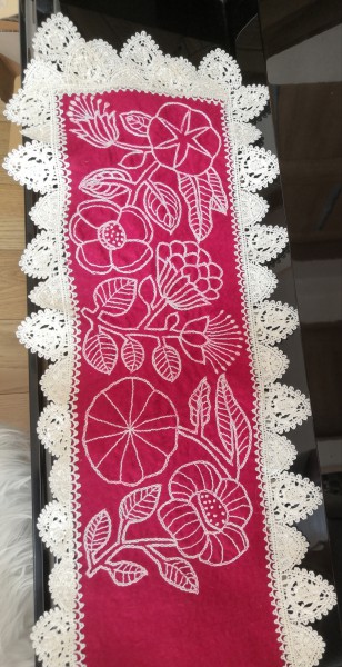 | ピアノのキーカバーに刺繍したらとんでもなく縮みました。 鍵盤が左右5センチずつ隠れなくなる程… てといとでアドバイスを頂き、気に入ったレースを周りに縫い付けましたが、歪みは誤魔化せず… 自然に縫い付けるのも素人には難しいですね(・o・;) でも頂いたアドバイスのおかげで諦めず何とか完成させる事が出来ました。 アドバイス頂いたchakuさん、kumaniaさん、本当にありがとうございましたm(_ _)m |