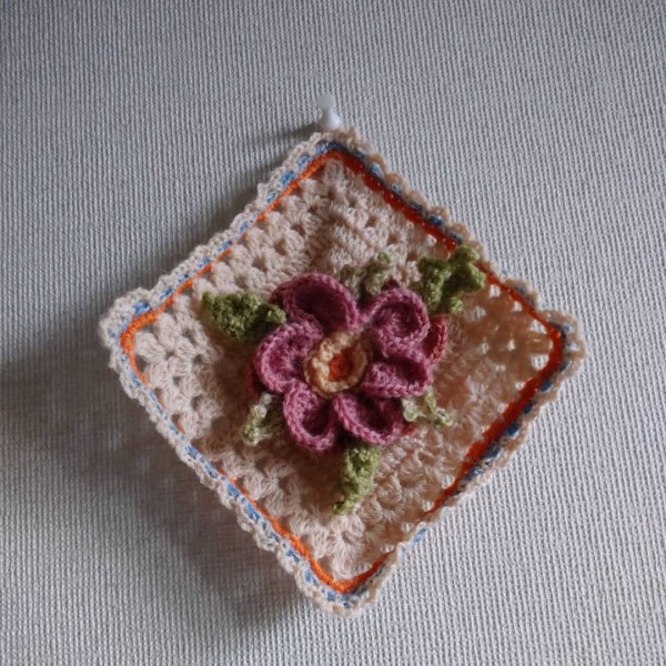 土台とフラワーに分けて編み、最後にとじ付けました。