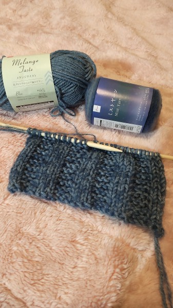 夫に色が気に入らないと言われ、別な色で編み直したら、こっちを編むモチベーションが下がってしまい、真夜中に全解きしてしまいました。(汗)