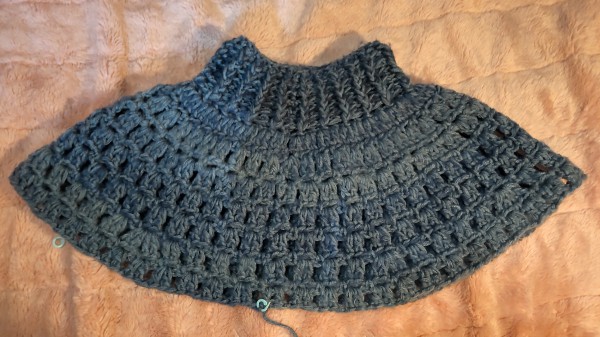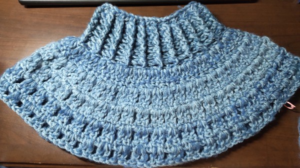 首元から編み直したら、今度は増し目しすぎてフリフリ過ぎて、邪魔くさくて…