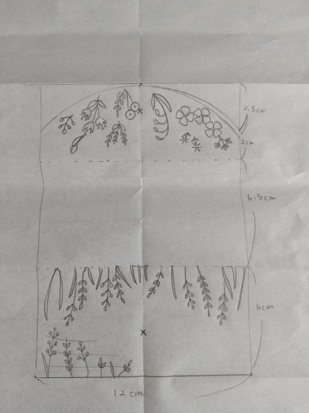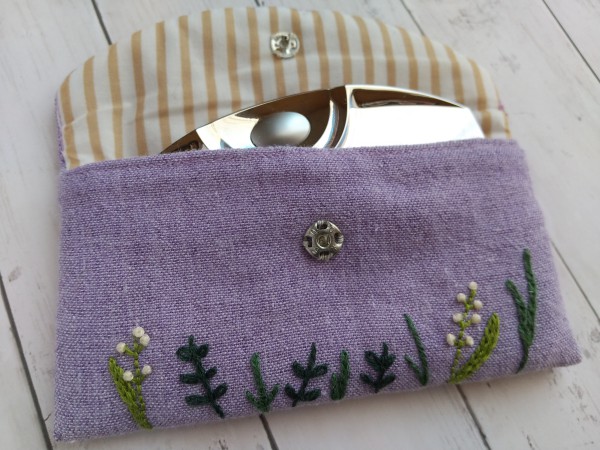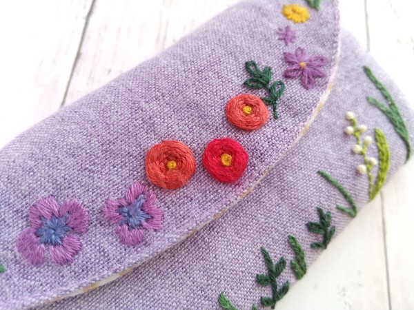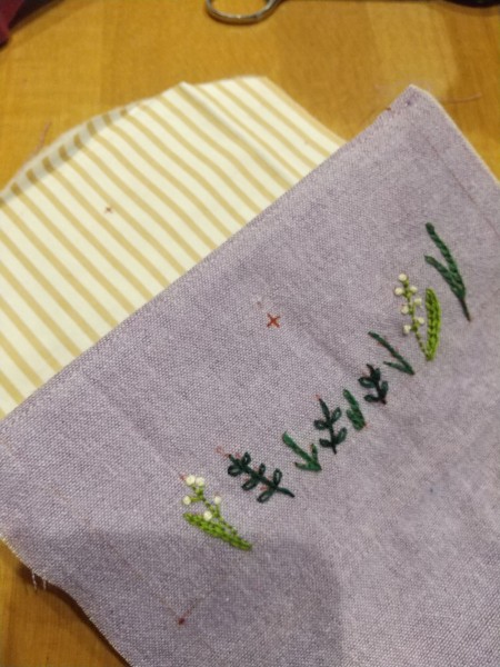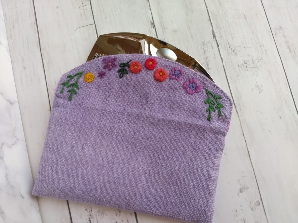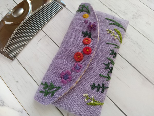 | コーム用のケースを作りました。 図案や刺繍糸の色合わせ等、悩みながらの制作でしたが、楽しくできました。 ロングアンドショートステッチはもう少し練習が必要かな。 全体的には可愛くできたと思います。 |