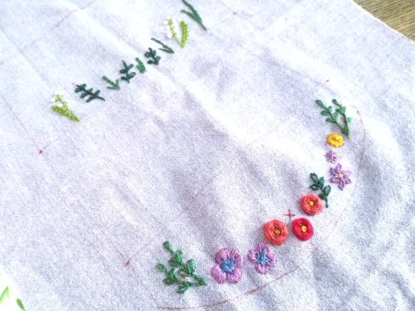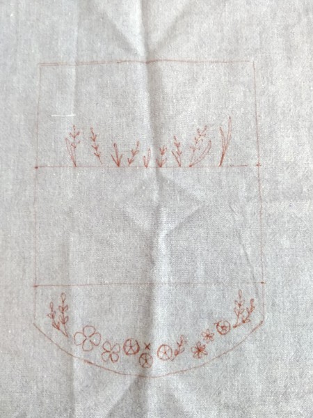 表布20cm×27cm(刺繍枠を使うため余白多め) 裏布、キルト芯 各14cm×20cm |