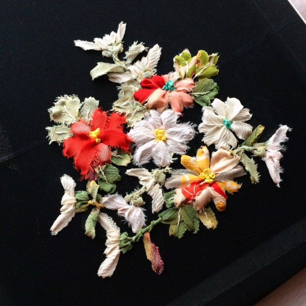 | キモノヤーンとリボン刺繍用でないリボンを使った和風リボン刺繍 | |