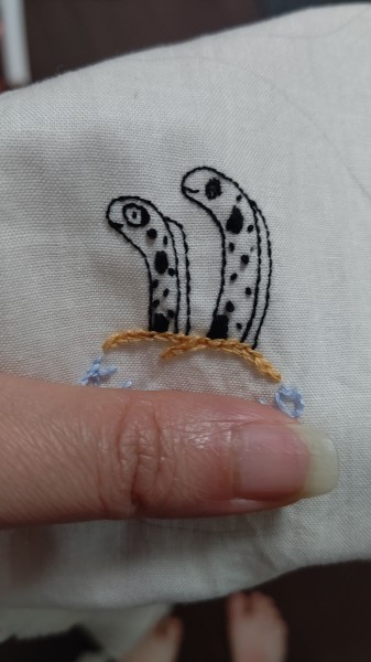 友達の好きなチンアナゴと名前の刺繍入り(指で隠れている所に名前入り)