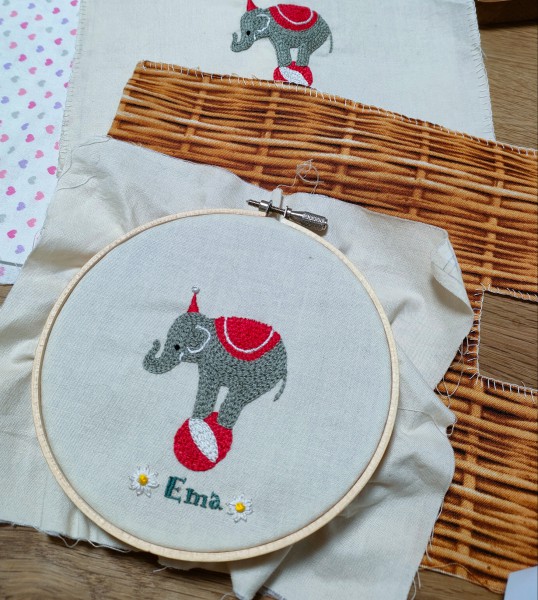楽しく刺繍したものの、可愛いすぎるデザインにて我が家の子ども達も使いにくい年頃なので、お友達の赤ちゃんにプレゼントしようかなー☆