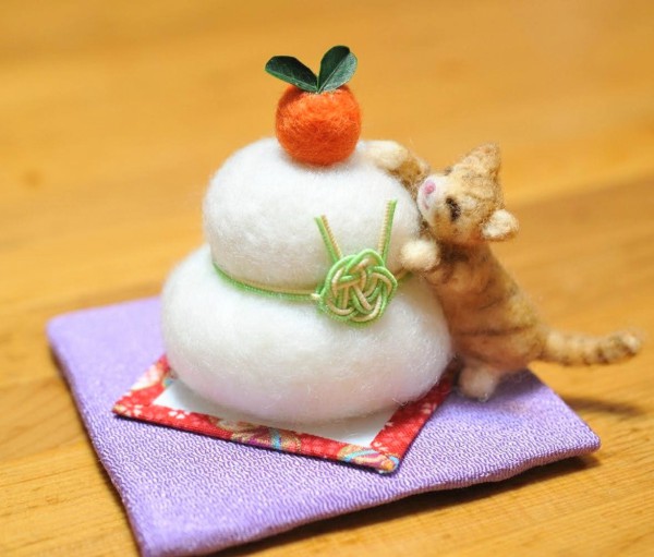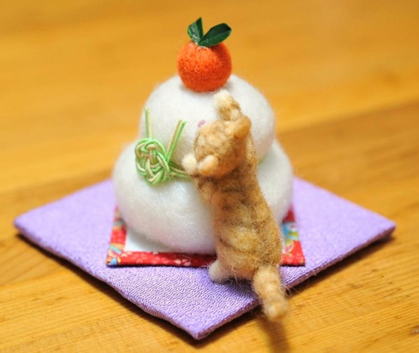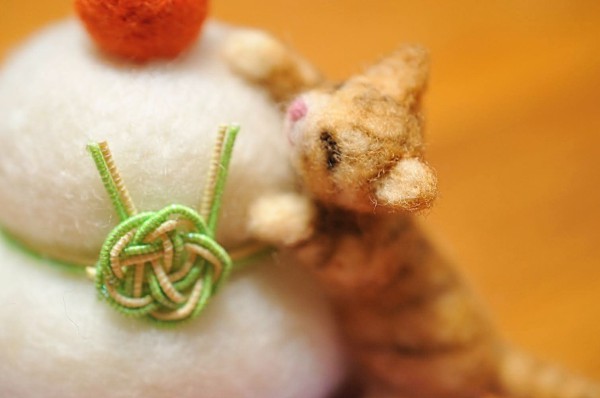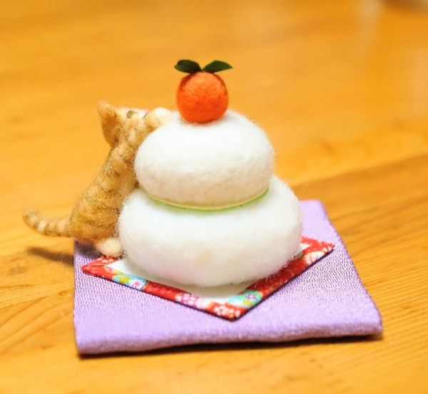 来年が寅年だったので、茶トラのにゃんこがいるので、羊毛フェルトで初めて季節物を作ってみました。