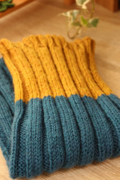 | 2色のフェイスカバースヌードが、完成しました~(^O^) 大好きなブルーに、落ち着いた色味のイエローをチョイス~♪ 真ん中でねじると、ニット帽に大変身! 好みで、どちらのお色でも使えます~(^^) 長さもたっぷりあるので、 スヌードで使うときには、 ドレープもしっかりと出てくれます~(^O^) またハマナカアメリーは、ウールにアクリル混なので、 チクチクしないから、いいですよ~(^^♪ |