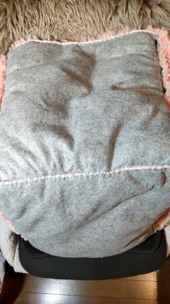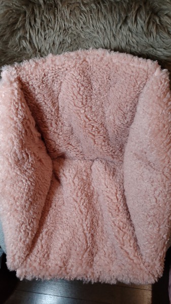 | 腰を包むクッション第2弾 100均座布団とボア生地 会社用のクッションもやっと作りました。 布が少なかったので、座布団の表にボアをミシンで縫い付け、裏はもともとの座布団のままです。 サイドは座布団を半分に折って縫い付けています。 |