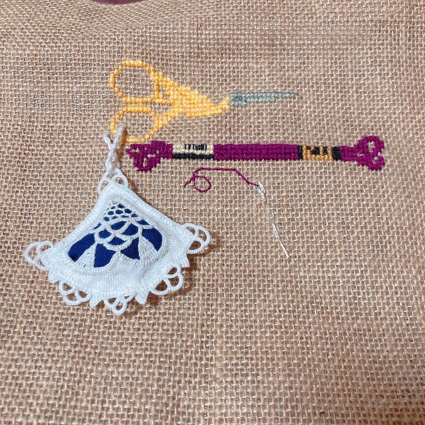 1月28日に追加で刺繍糸と糸を通した様な針も刺繍しました。