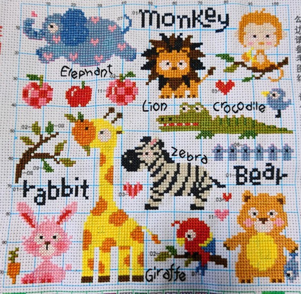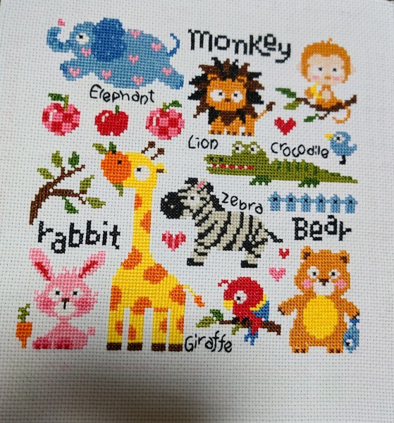 可愛い刺繍キットを見つけたので、初めて大きめ(30cm×30cm)の作品に挑戦してみました。
